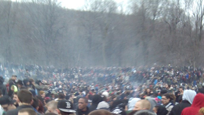 Des milliers de Montréalais fument un joint sur le mont Royal